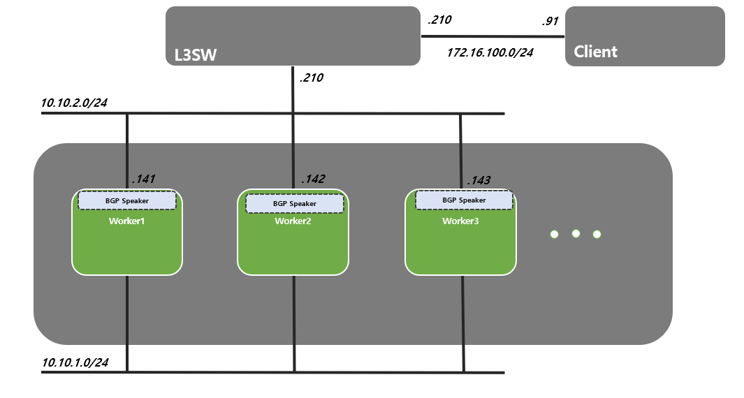 참고로 해당 label이 설정된 노드들에는 metallb speaker 가 동작중이며, 외부에서 External IP 로 들어오는 패킷들이 해당 노드로 먼저 유입 된다.